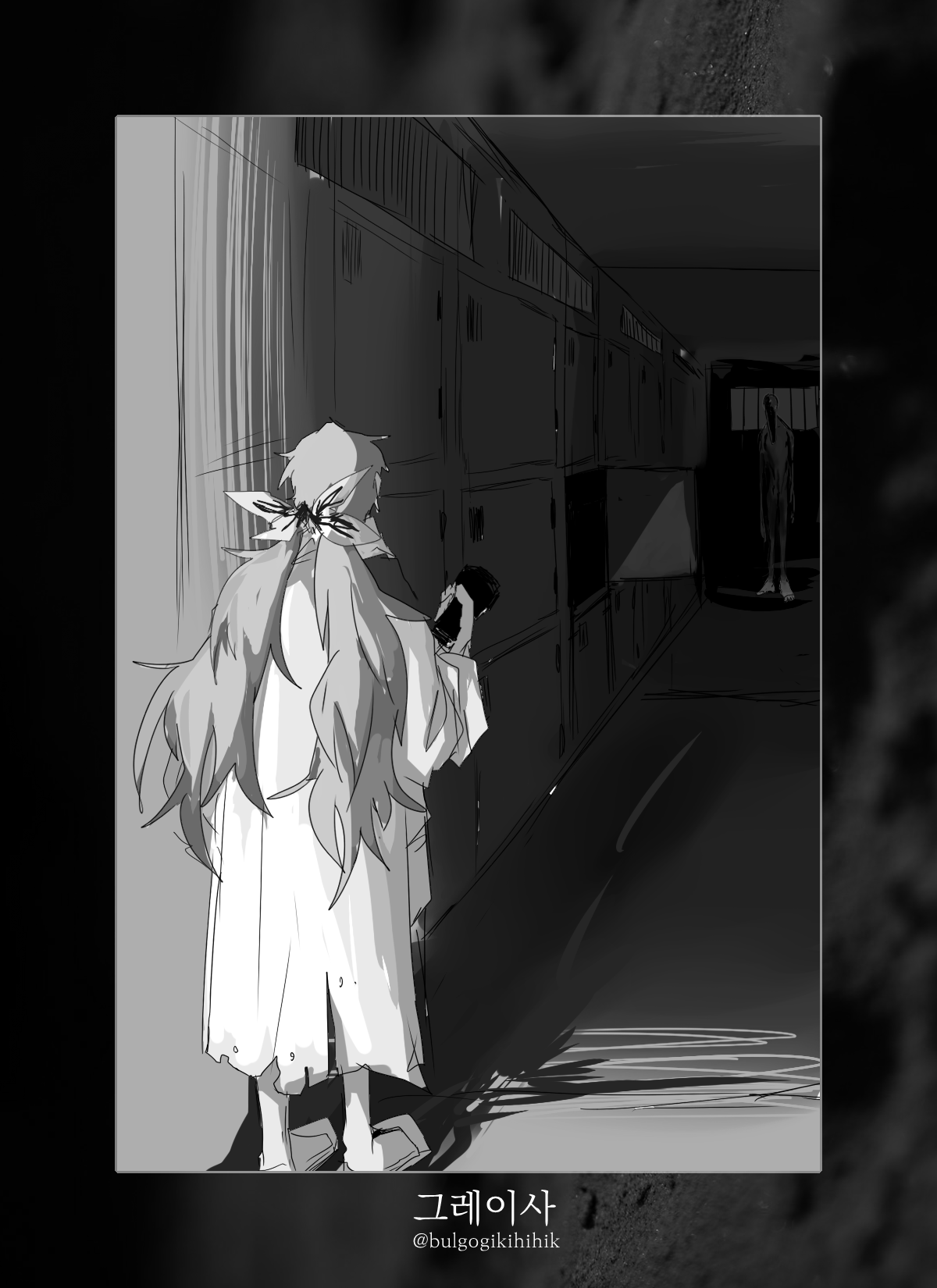 나는 알 수 없는 슬픔과 공포와 아픔으로 인해 패닉에 빠져 비명을 질렀고, 그 애가 나를 눈치채고 뒤돌아보면서 검은 손들은 그 애의 치마 아래로 사라져버렸어.