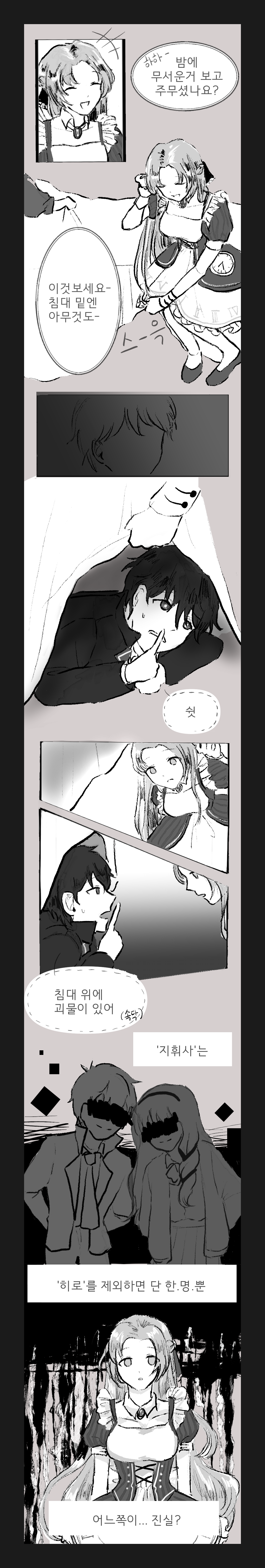 “지금도 꿈인 거 같아요. 분명 아침에 일어나서 오늘 하루도 확인하고, 중앙청 업무도 완수했고, 앙투아네트가 죽을 때 카지와 함께 슬퍼했고, 안화한테도 혼났거든요, 분명. 아, 맞아, 그거 알아요? 와타리도 앙투아네트 곁을 지켰어요.”